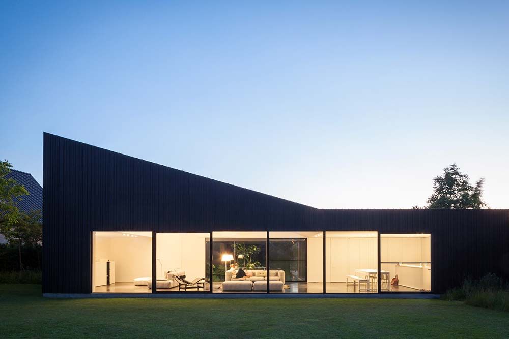 Des formes distinctives, de grandes fenêtres et une approche intelligente dans le choix et la combinaison des matériaux caractérisent cette maison individuelle conçue par le cabinet Bruno Vanbesien Architectes, de Bruxelles, Belgique.