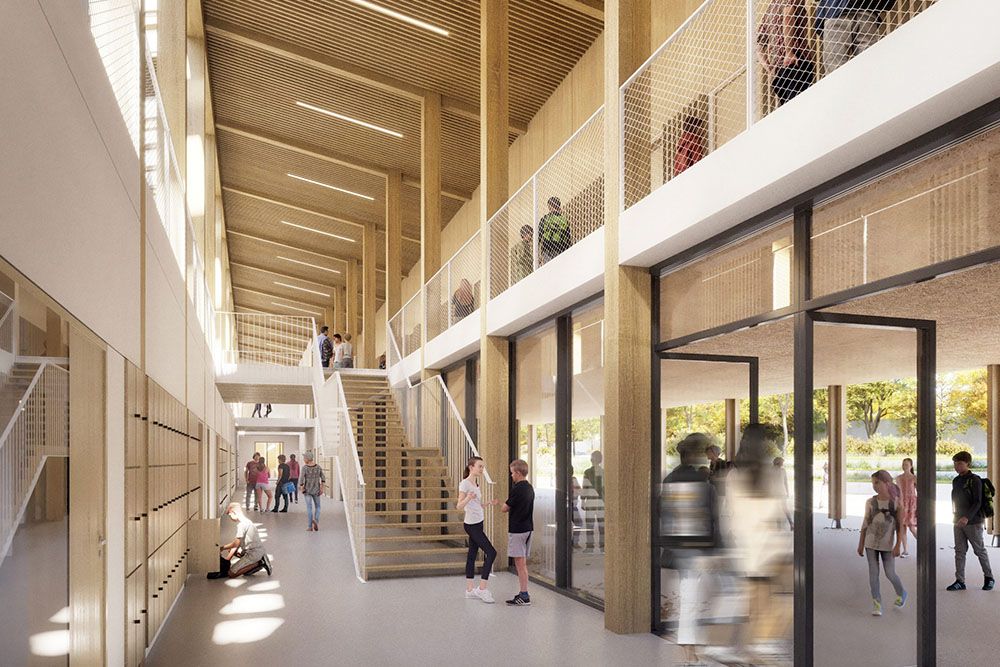 Le studio d’architecture français Coldefy, en collaboration avec Relief Architecture, a achevé le Collège Robert Badinter, la première école à ossature bois du Nord de la France, pouvant accueillir 650 élèves. L’école est implantée sur un ancien terrain de triage, à proximité de la gare de la ville et à dix minutes à pied du centre-ville.