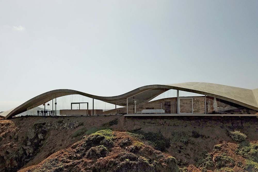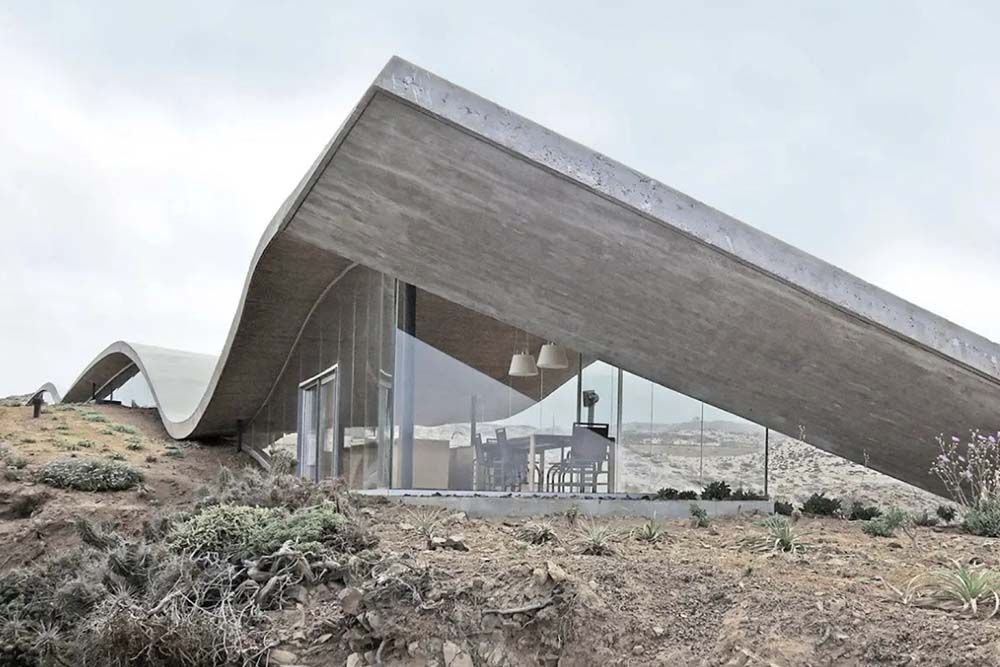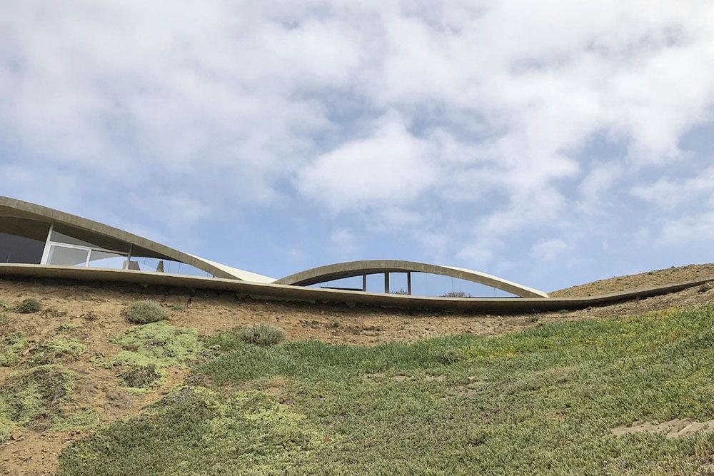 Cette maison, réalisée par Ryue Nishizawa à Los Vilos (Chili), surplombe le Pacifique et s’étend sur le terrain sous un toit unique et ondulant.