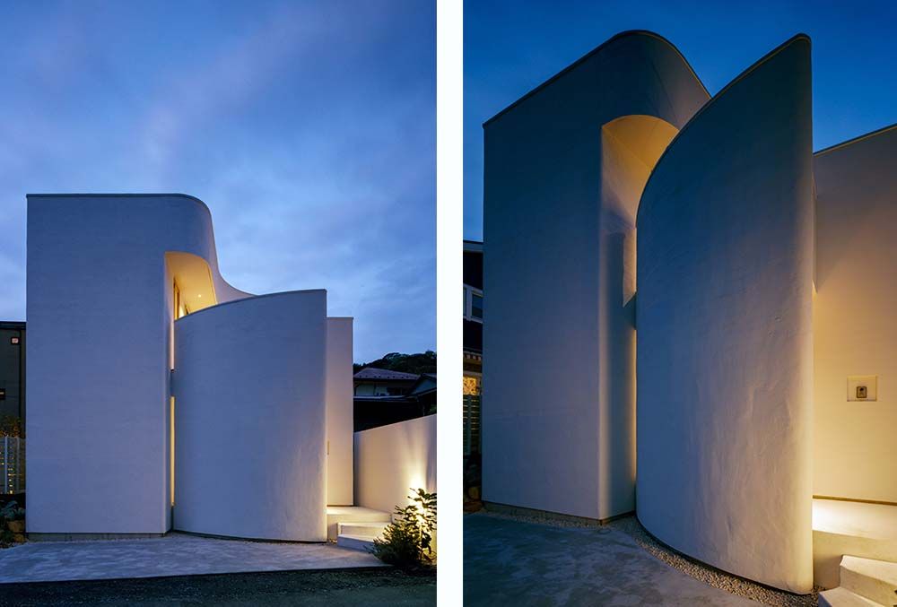 La cuisine reprend cet enduit afin de s’harmoniser avec l’ambiance générale, et ses formes arrondies s’intègrent au caractère doux du projet. La chambre et la salle de bain s’ouvrent sur la cour. La lumière réfléchie par les murs blancs enveloppe doucement ces espaces, créant dans la salle de bain une atmosphère rappelant un bain en plein air.