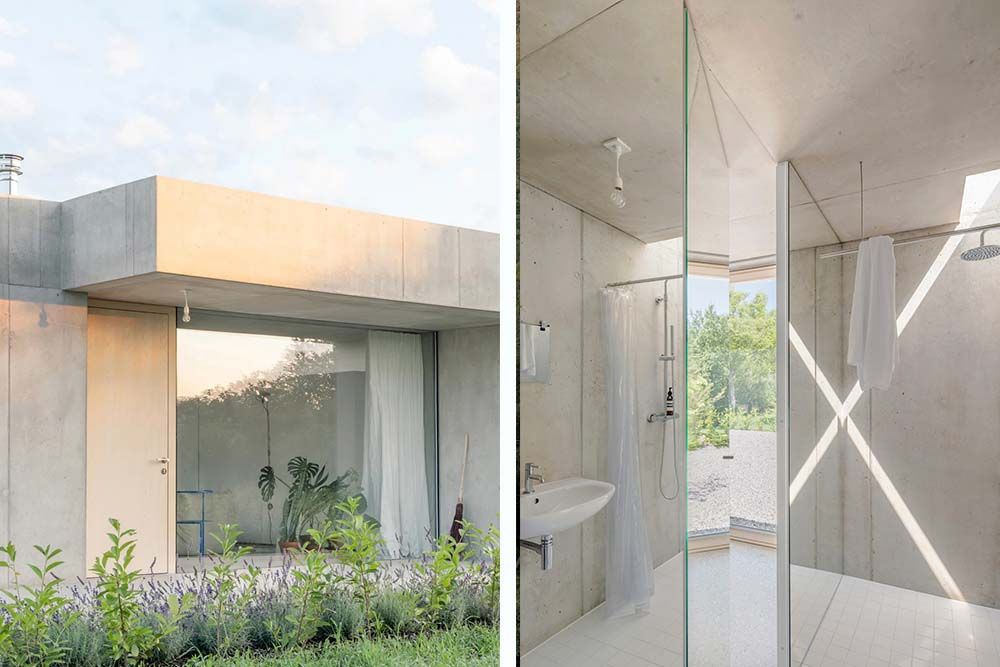 La maison n’est pas conçue comme un objet posé sur le site, mais comme constituée à partir de lui : le béton devient un terrain solidifié, fusionnant la logique fonctionnelle moderniste et l’identité locale du lieu.