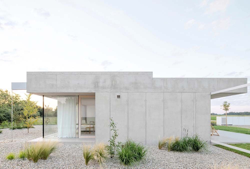 Le béton apparent, intégrant des granulats locaux provenant du gravier de la rivière Mura, constitue l’élément médiateur principal entre l’architecture et le lieu. L’authenticité des matériaux, l’absence d’ornementation et la clarté structurelle recherchée font écho à l’éthique architecturale rationnelle et socialement engagée de Novak, ici réinterprétée dans le contexte contemporain de l’habitation individuelle.