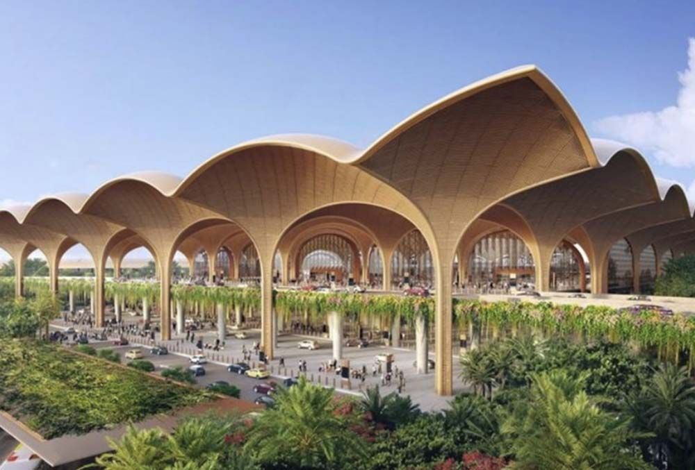 L’architecture de l’aéroport a été confiée au cabinet britannique Foster + Partners, qui a imaginé un ensemble mêlant inspiration khmère et modernité. Les dômes rappellent le tressage du bambou, tandis qu’une statue monumentale de Bouddha de neuf mètres, en position Abhayamudra, accueille les passagers dans une atmosphère de sérénité.