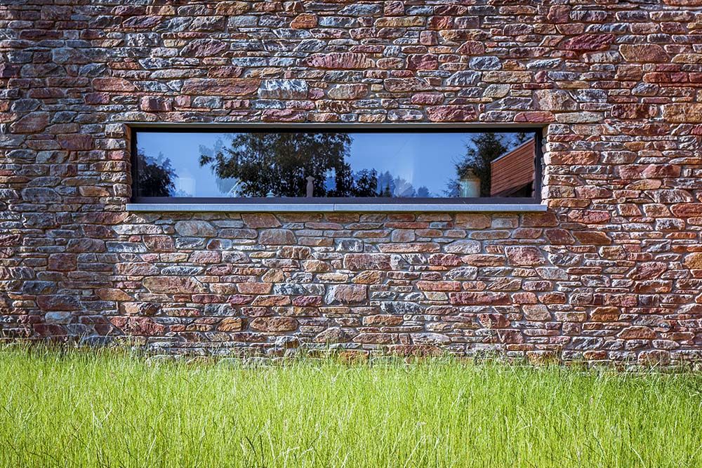Extraits des carrières de la Warche, à Malmedy, ces moellons sont le fruit d’un savoir-faire local et d’une ressource authentique, façonnée par un patrimoine géologique unique. Naturellement teintée de rouge, la pierre déploie une palette subtile — rouille, gris, bleu — issue de l’oxydation de son litage fin et onduleux. Cette variété chromatique permet une intégration élégante dans les projets contemporains comme dans les restaurations patrimoniales. Associée au bois, à la pierre bleue, au marbre, au cuivre, au zinc ou à l’acier, elle crée un dialogue équilibré entre tradition et modernité.